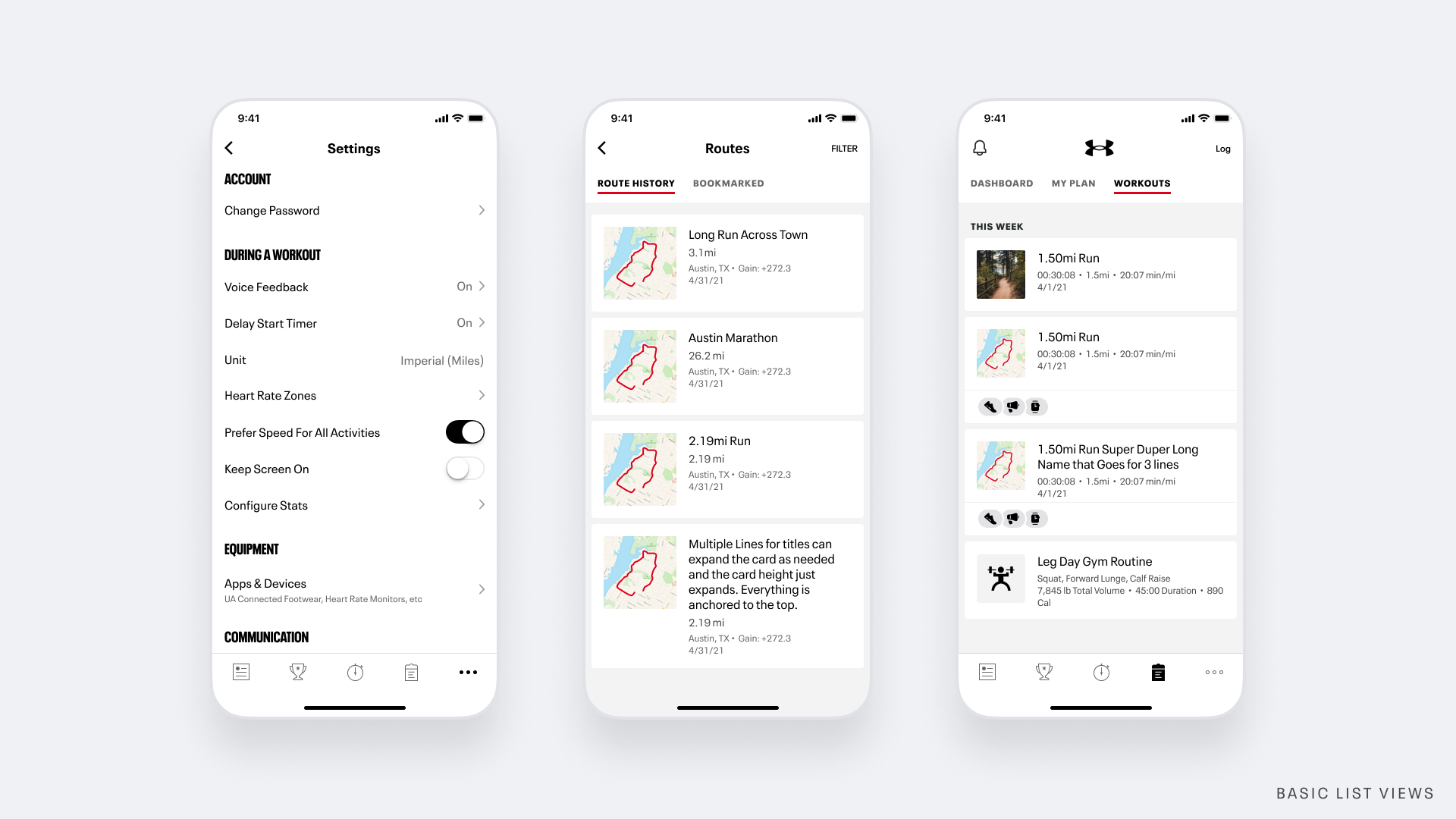 For this, it was a matter of really pushing the bold visual language of Under Armour as much as we could while still allowing for flexible, user friendly, scalable app functionality.